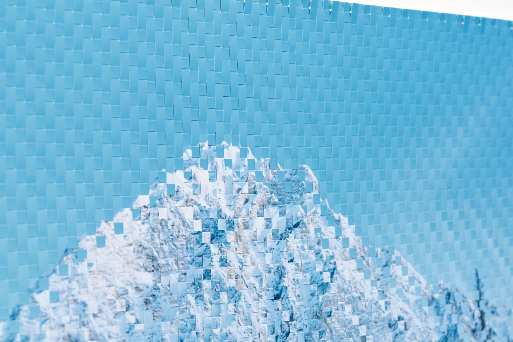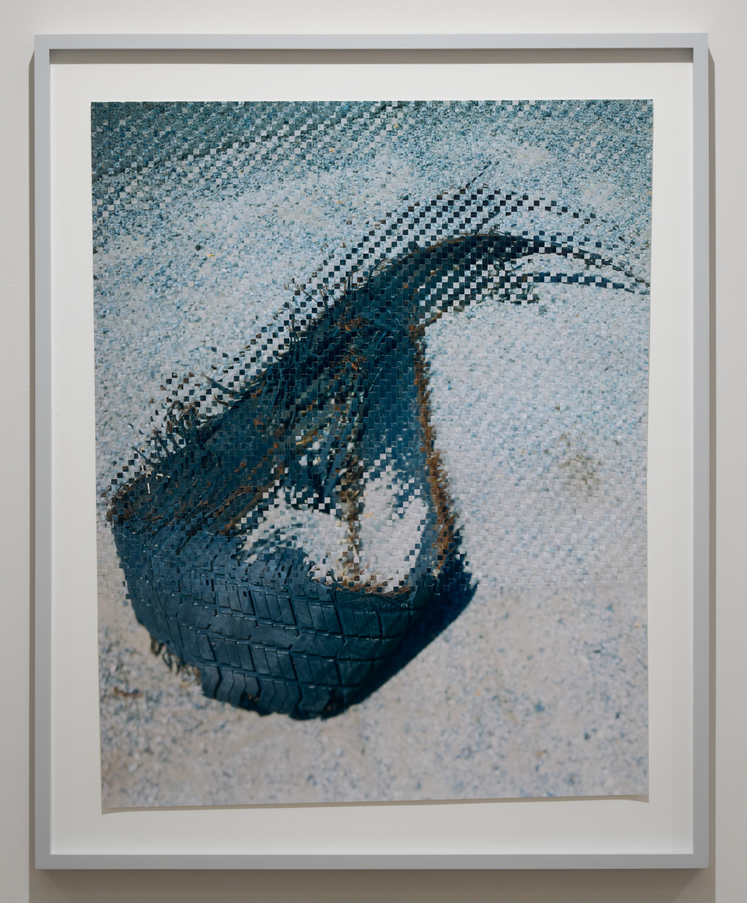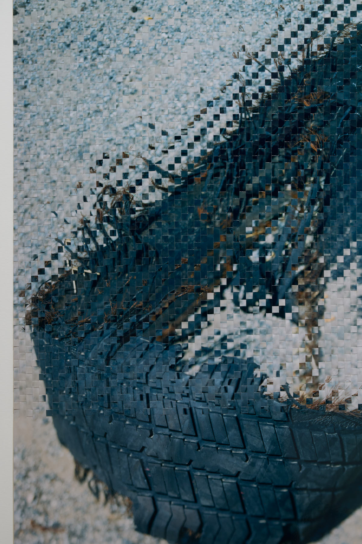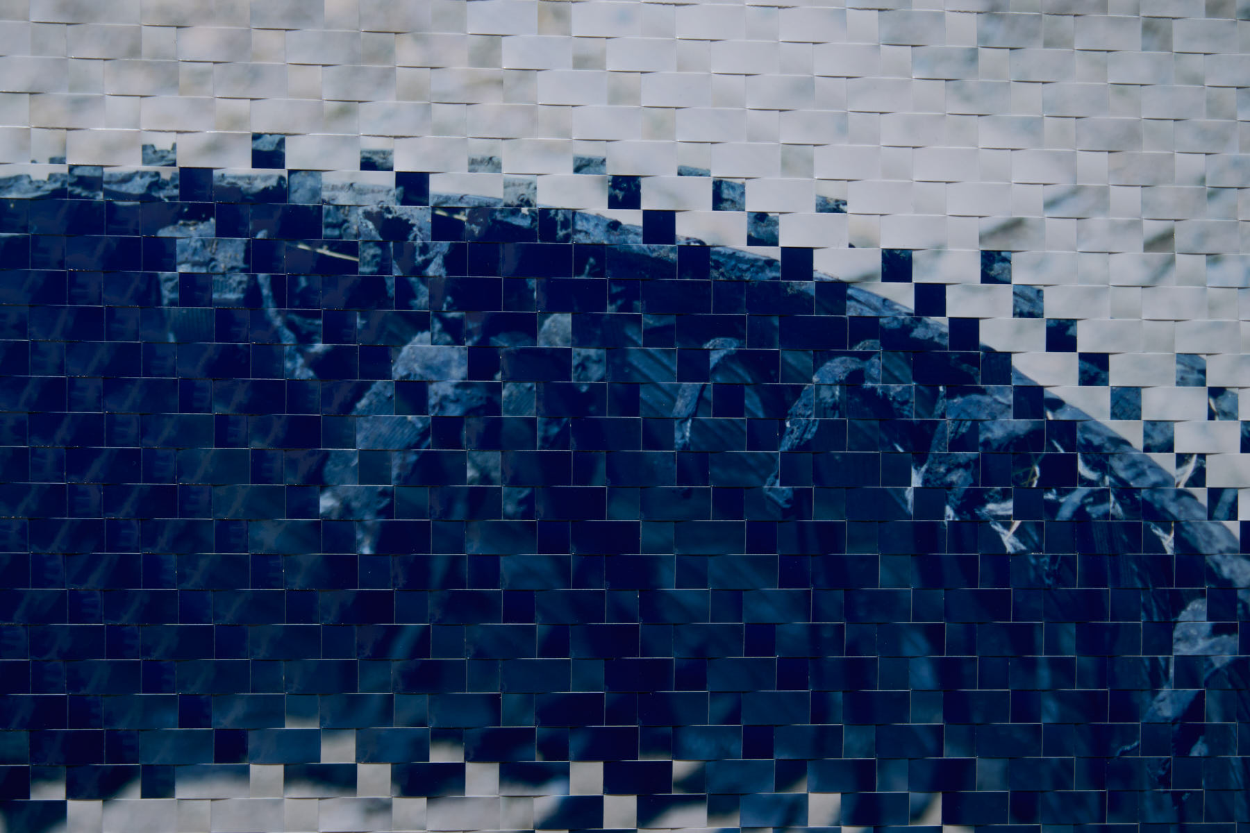 21世紀のあらゆる歴史的な事件が、例外なくSNSに紐づいて語ることが可能であるように、現在の写真の姿とは、手のひらのパーソナルな装置 の上での「小さな小さな」画像たちだ。そんな進化の過程の中でも、写真の持つ演劇性や劇場性、暴力的と言って良いほどの写真の魔術性を写真の 「平面性」は確実に担保してきただろう。その証拠にSNSに不可欠なスマートフォンのタッチパッドは、手触りが存在しないことで成り立つ2.0次元 の画像世界だ。 まず写真そのものを「編む」という行為により、2.0次元以上の「肌理(Texture)」を獲得し、次に印画紙の弾力を利用して、3.0次元の「祖型 (Prototype)」を試みる。